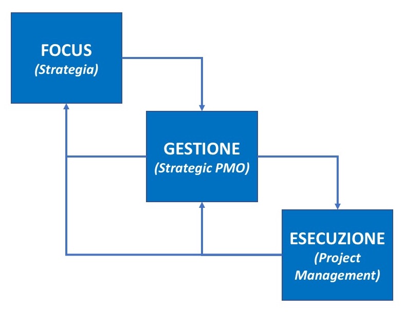 Una delle ragioni è la mancanza di una struttura o entità organizzativa che abbia la chiara responsabilità di collegare la strategia ai progetti e di monitorare gli stessi progetti, per garantire che continuino ad essere allineati con le priorità strategiche aziendali, in linea con le mutevoli condizioni attuali che richiedono alle organizzazioni una notevole agilità sia organizzativa che strategica.